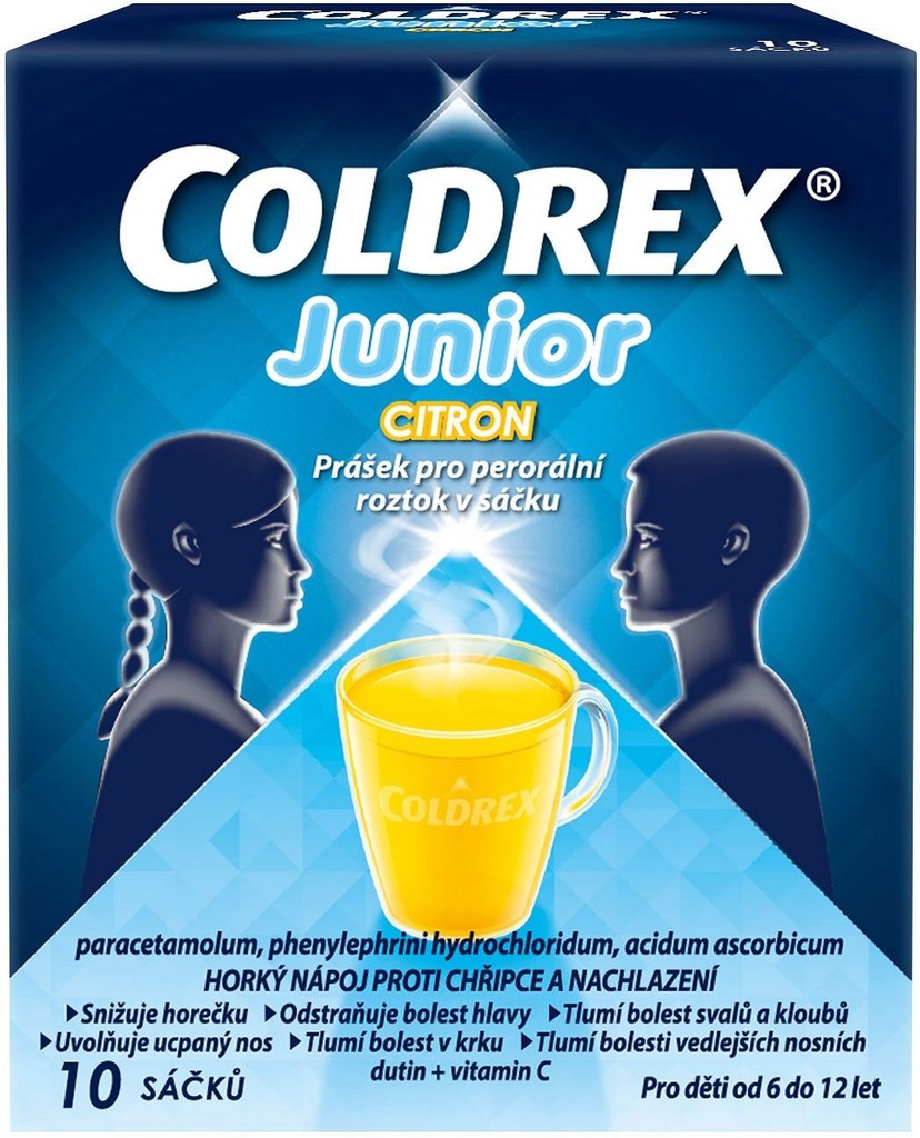 Coldrex Junior Citron je lék proti chřipce a nachlazení. Působí proti bolesti a zároveň snižuje tělesnou teplotu při horečce. Uvolňuje ucpaný nos a vedlejší nosní dutiny, pomáhá ulehčit dýchání. Coldrex Junior dítěti poskytuje rychlé zmírnění příznaků chřipky a nachlazení, zahrnující horečku, třesavku, ucpaný nos, bolest hlavy, bolest svalů i kloubů, bolest v krku, zánět vedlejších nosních dutin a s ním spojenou bolest. Tento přípravek je určen pouze pro pacienty, kteří mají příznaky chřipky nebo nachlazení doprovázené ucpaným nosem. Pokud pacienti nemají ucpaný nos, doporučuje se použití jiných léčivých přípravků.