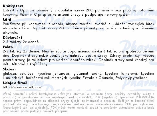 Extrakt z Opuncie obsažený v doplňku stravy 2KC pomáhá v boji proti symptomům kocoviny. Vitamin C přispívá ke snížení únavy a podporuje nervový systém.