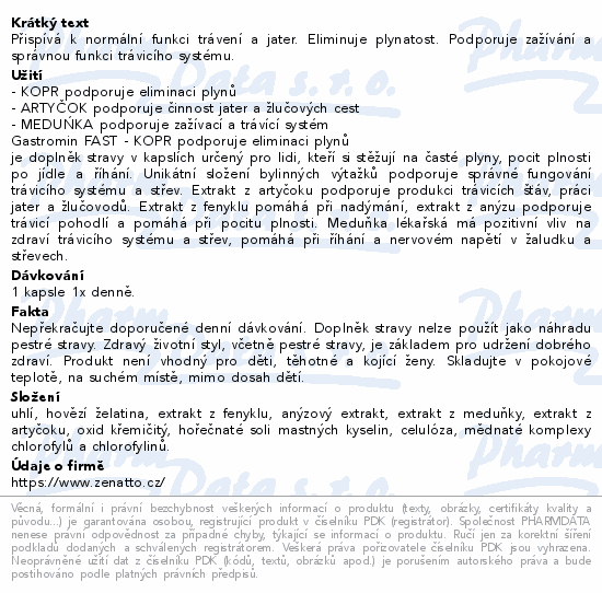 Přispívá k normální funkci trávení a jater. Eliminuje plynatost. Podporuje zažívání a správnou funkci trávicího systému.
