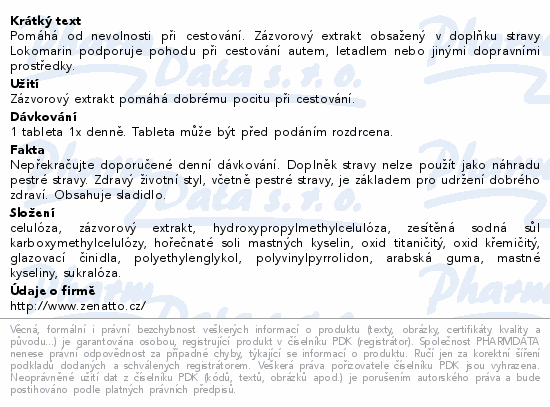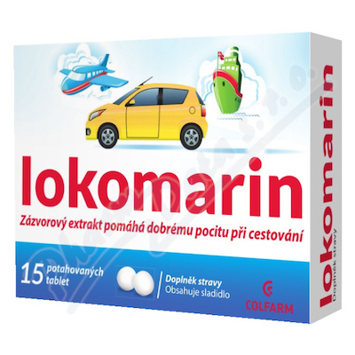 Pomáhá od nevolnosti při cestování. Zázvorový extrakt obsažený v doplňku stravy Lokomarin podporuje pohodu při cestování autem, letadlem nebo jinými dopravními prostředky.