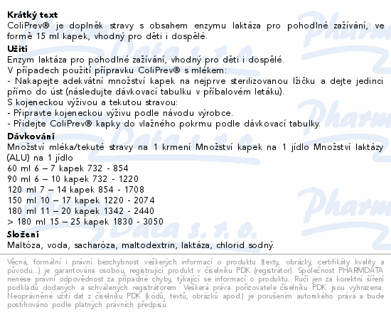 ColiPrev® je doplněk stravy s obsahem enzymu laktáza pro pohodlné zažívání, ve formě 15 ml kapek, vhodný pro děti i dospělé.