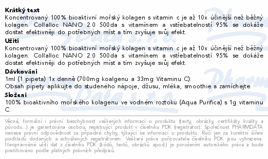 Koncentrovaný 100% bioaktivní mořský kolagen s vitamin c je až 10x účinější než běžný kolagen. Collalloc NANO 2.0 500da s vitamínem a vstřebatelností 95% se dokáže dostat efektivněji do potřebných míst a tím zvyšuje svůj efekt.