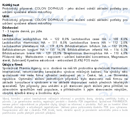 Probiotický přípravek COLON DOPHILUS - jeho složení odráží základní potřeby pro udržení vyvážené střevní mikroflóry.