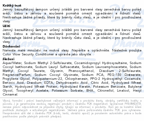 Jemný bezsulfátový šampon určený zvláště pro barvené vlasy zanechává barvu pořád svěží, čistou a zářivou a současně pomáhá omezit vypadávání a řídnutí vlasů. Neobsahuje žádné přísady, které by bránily růstu vlasů, a je ideální i pro prodloužené vlasy.