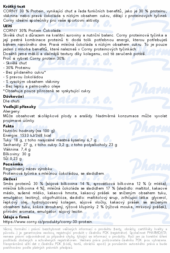 CORNY 30 % Protein, vynikající chuť a řada funkčních benefitů, jako je 30 % proteinu, vláknina nebo pravá čokoláda s nízkým obsahem cukru, dělají z proteinových tyčinek Corny ideální společníky pro vaše sportovní aktivity.