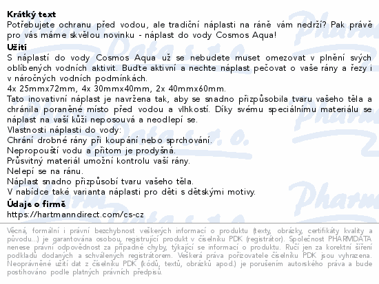 Cosmos aqua náplast do vody 3 velikosti 10ks