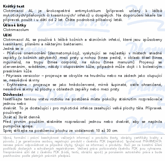 Clotrimazol AL je širokospektré antimykotikum (přípravek určený k léčbě mykotických/plísňových či kvasinkových/ infekcí) u dospělých. Na doporučení lékaře lze přípravek použít i u dětí od 2 let. Čtěte pozorně příbalový leták.