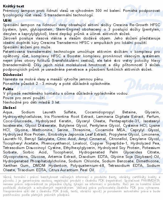 Crescina HFSC šampon proti řídnut.vlasů muži 500ml