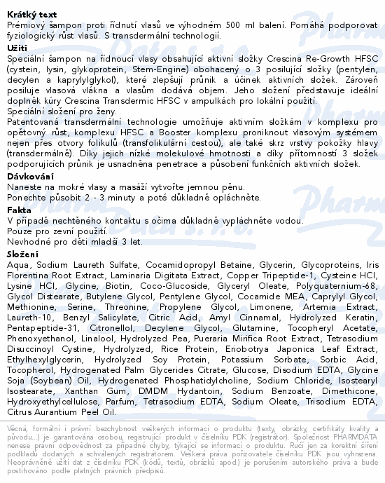 Crescina HFSC šampon proti řídnut.vlasů ženy 500ml