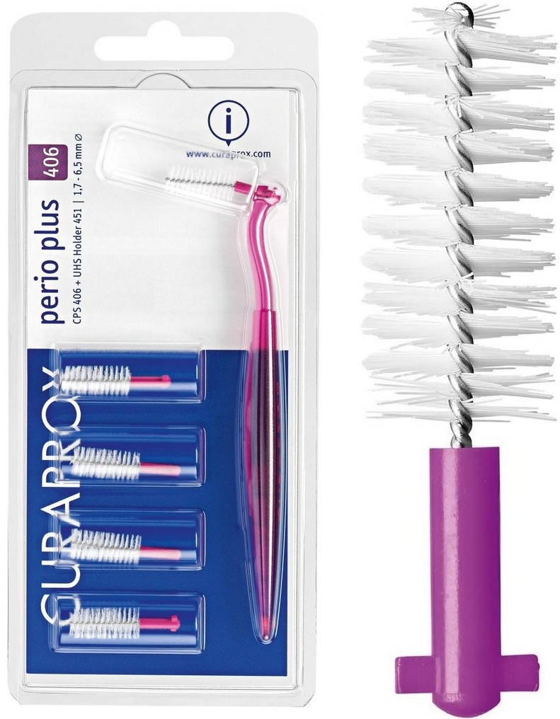 CURAPROX CPS 406 Perio plus je určený k dokonalému vyčištění mezizubních prostor. Řada "perio" velikostně navazuje na řadu "prime". Balení obsahuje 5ks mezizubních kartáčků, 1ks úhlového držáku UHS 451 (blister).