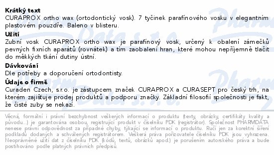 CURAPROX ortho wax (ortodontický vosk). 7 tyčinek parafínového vosku v elegantním plastovém pouzdře. Baleno v blisteru.