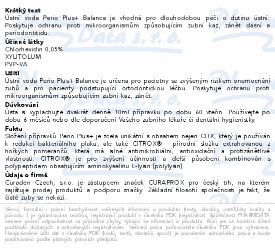 Ústní voda Perio Plus+ Balance je vhodná pro dlouhodobou péči o dutinu ústní. Poskytuje ochranu proti mikroorganismům způsobujícím zubní kaz, zánět dásní a periodontitidu.