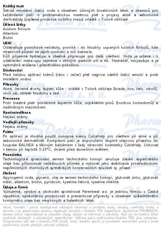 Šetrná micelární čistící voda s obsahem účinných bioaktivních látek a vitaminů pro každodenní péči o problematickou mastnou pleť s projevy akné a seboroické dermatitidy (zvýšené produkce kožního mazu) zvláště v T-zóně obličeje.