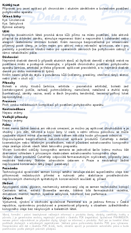Přípravek pro zevní aplikaci při chronickém i akutním zánětlivém a bolestivém postižení pohybového aparátu.