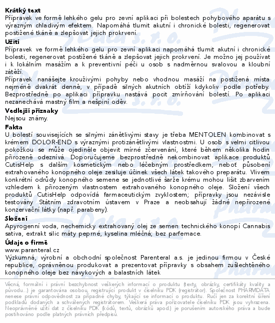 CutisHelp MENTOLEN konopné mazání při bolest.200ml