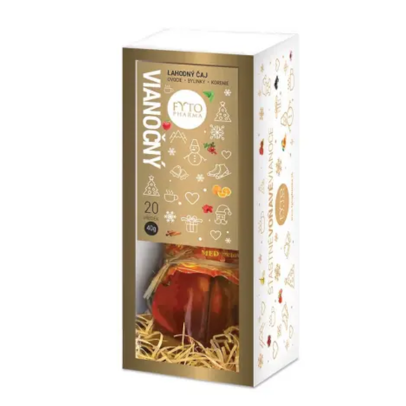 Dárkové balení vánočního čaju firmy Fytopharma, doplněno o 250 g květového medu. Lahodné směsi ovoce, bylin a koření pro sváteční vánoční chvíle plné pohody a harmonie.