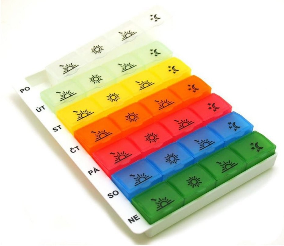 Dávkovač léků OBZOR typ 04 týdenní duhový