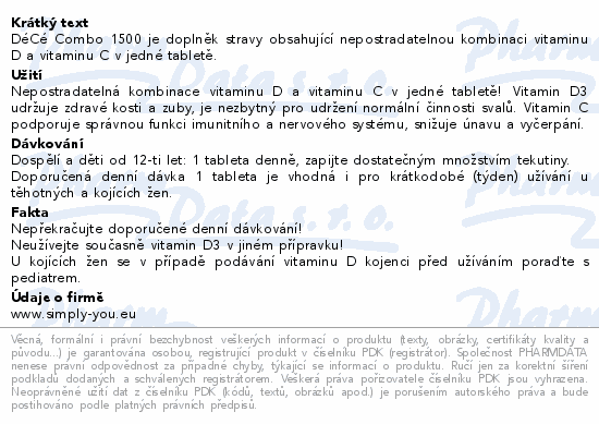 DéCé Combo 1500 je doplněk stravy obsahující nepostradatelnou kombinaci vitaminu D a vitaminu C v jedné tabletě.