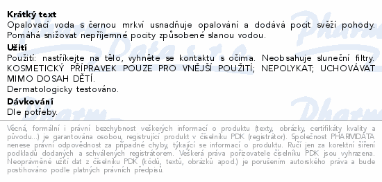Opalovací voda s černou mrkví usnadňuje opalování a dodává pocit svěží pohody. Pomáhá snižovat nepříjemné pocity způsobené slanou vodou.