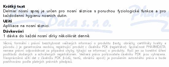 Delmar nosní sprej je určen pro nosní sliznice s poruchou fyziologické funkce a pro každodenní hygienu nosních dutin.