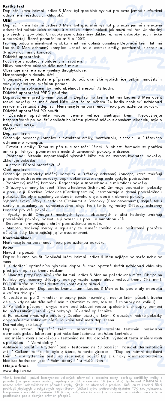 Depilační krém Intimní Ladies & Men: byl speciálně vyvinut pro extra jemné a efektivní odstranění nežádoucích chloupků.