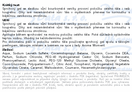 Sprchový gel se sladkou vůní bourbonské vanilky provoní pokožku celého těla i vaši koupelnu. Díky své nezaměnitelné vůni Vás v myšlenkách přenese ke kornoutku s báječnou vanilkovou zmrzlinou.