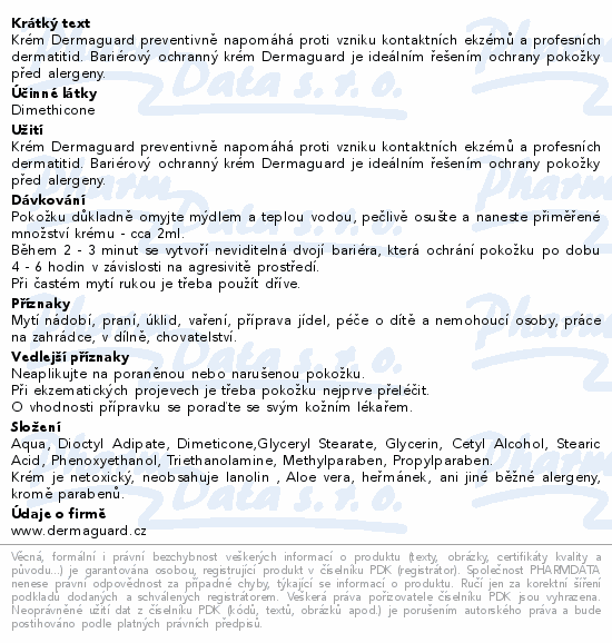 Krém Dermaguard preventivně napomáhá proti vzniku kontaktních ekzémů a profesních dermatitid. Bariérový ochranný krém Dermaguard je ideálním řešením ochrany pokožky před alergeny.