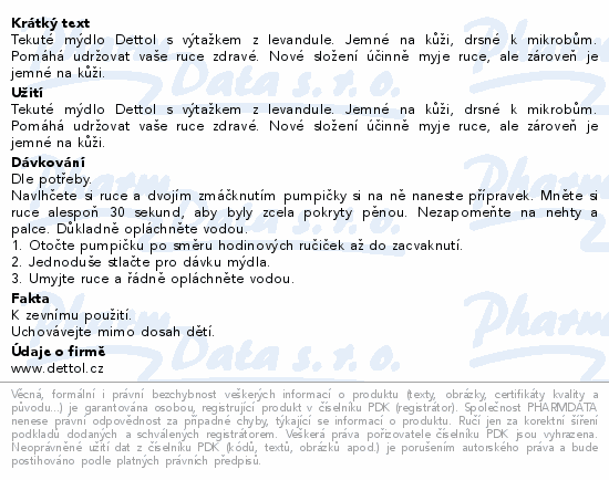 Tekuté mýdlo Dettol s výtažkem z levandule. Jemné na kůži, drsné k mikrobům. Pomáhá udržovat vaše ruce zdravé. Nové složení účinně myje ruce, ale zároveň je jemné na kůži.