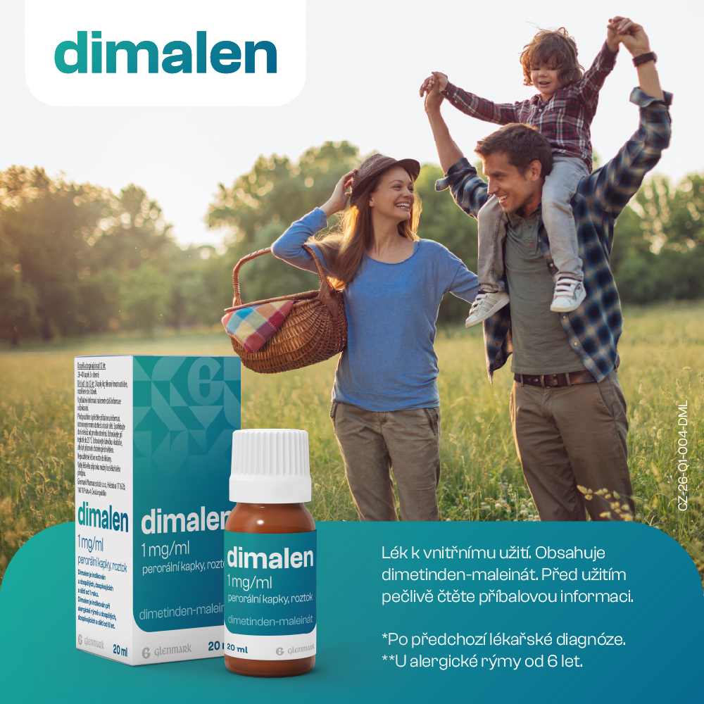 Dimalen kapky jsou antihistaminikum k léčbě příznaků alergie. Ulevují od sezónní a celoroční rýmy, svědění spojeného s infekčními chorobami (např. plané neštovice), kopřivkou, po kousnutí nebo bodnutí hmyzem. Pro dospělé, dospívající a děti od 1 roku. Čtěte pozorně příbalový leták.