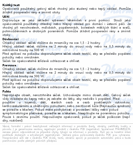Opakovaně použitelný gelový sáček vhodný jako studený nebo teplý obklad. Pomůže zklidnit pooperační rány a zmírnit otoky.