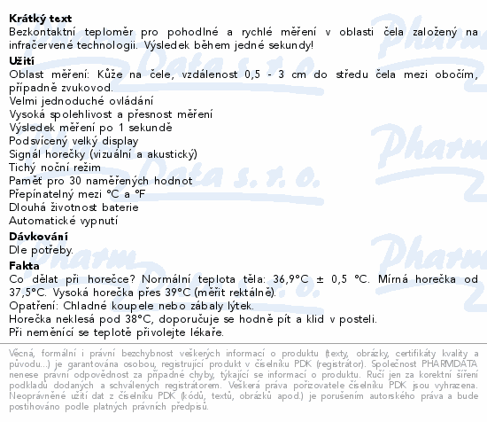 Bezkontaktní teploměr pro pohodlné a rychlé měření v oblasti čela založený na infračervené technologii. Výsledek během jedné sekundy!