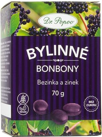 Bonbony Bezinka a zinek Dr. Popova mají příjemnou chuť bezinky. Zinek podpoří imunitu a normální stav vlasů, nehtů a pokožky.