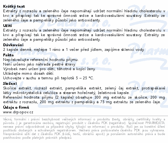 Extrakty z rozrazilu a zeleného čaje napomáhají udržet normální hladinu cholesterolu v krvi a přispívají tak ke správné činnosti srdce a kardiovaskulární soustavy. Extrakty ze zeleného čaje a pampelišky působí jako antioxidanty.