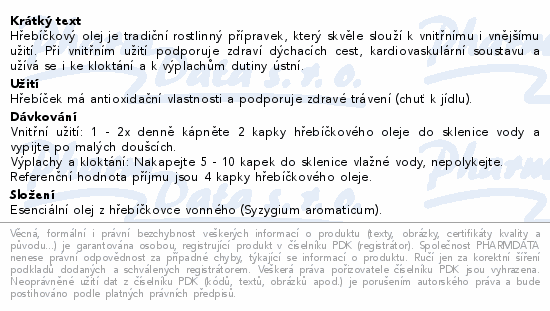 Hřebíčkový olej je tradiční rostlinný přípravek, který skvěle slouží k vnitřnímu i vnějšímu užití. Při vnitřním užití podporuje zdraví dýchacích cest, kardiovaskulární soustavu a užívá se i ke kloktání a k výplachům dutiny ústní.
