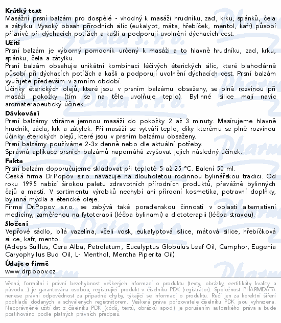 Dr.Popov Masážní prsní balzám pro dospělé 50ml