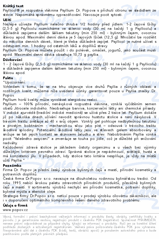 Dr.Popov Psyllicol příchuť citron 100g