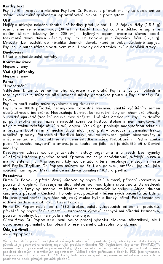 Dr.Popov Psyllicol příchuť malina 100g