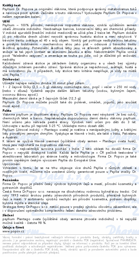 Přírodní zdroj vlákniny špičkové kvality, vynikající pro zvýšení příjmu vlákniny. Šetrně pomůže Vašemu snadnému vyprazdňování a podpoří správný metabolismus tuků. Přináší pocit sytosti.
