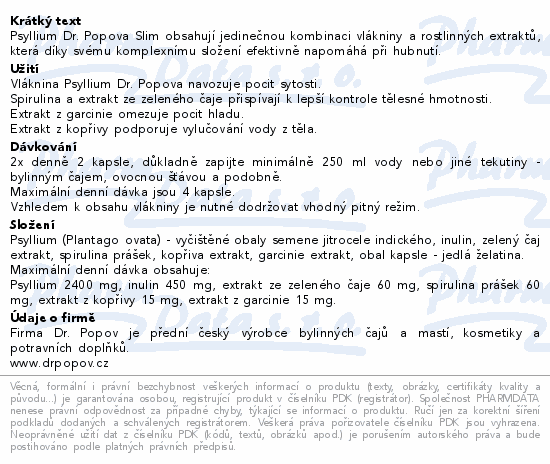 Psyllium Dr. Popova Slim obsahují jedinečnou kombinaci vlákniny a rostlinných extraktů, která díky svému komplexnímu složení efektivně napomáhá při hubnutí.