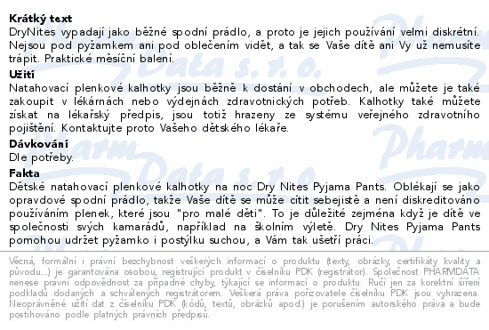 DryNites vypadají jako běžné spodní prádlo, a proto je jejich používání velmi diskrétní. Nejsou pod pyžamkem ani pod oblečením vidět, a tak se Vaše dítě ani Vy už nemusíte trápit. Praktické měsíční balení.