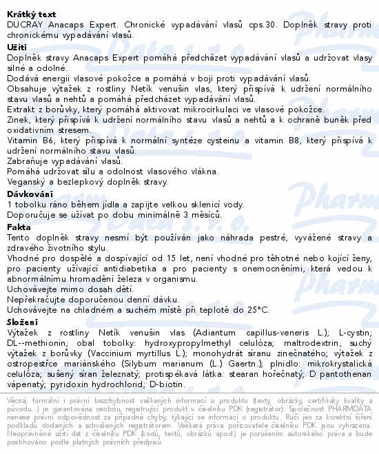DUCRAY Anacaps Expert. Chronické vypadávání vlasů cps.30. Doplněk stravy proti chronickému vypadávání vlasů.