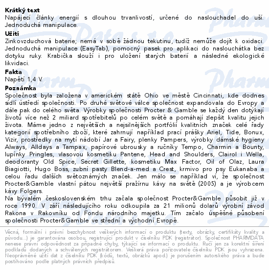 Napájecí články energií s dlouhou trvanlivostí, určené do naslouchadel do uší. Jednoduchá manipulace.