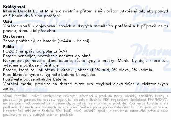Intense Delight Bullet Mini je diskrétní a přitom silný vibrátor vytvořený tak, aby poskytl až 5 hodin chvějícího potěšení.
