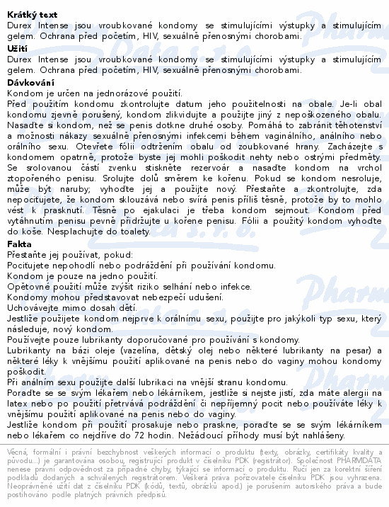 Durex Intense jsou vroubkované kondomy se stimulujícími výstupky a stimulujícím gelem. Ochrana před početím, HIV, sexuálně přenosnými chorobami.
