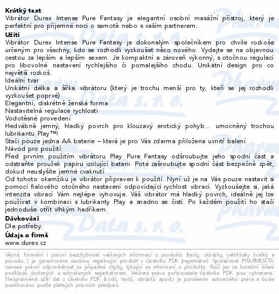 Vibrátor Durex Intense Pure Fantasy je elegantní osobní masážní přístroj, který je perfektní pro příjemné noci o samotě nebo s vaším partnerem.