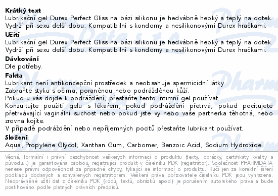 Lubrikační gel Durex Perfect Gliss na bázi silikonu je hedvábně hebký a teplý na dotek. Vydrží při sexu delší dobu. Kompatibilní s kondomy a nesilikonovými Durex hračkami.