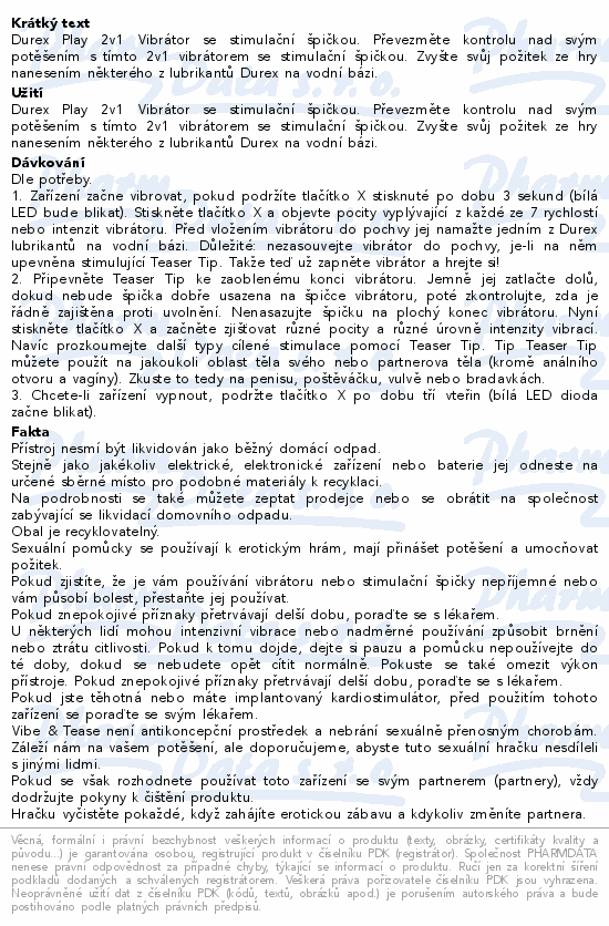 Durex Play 2v1 Vibrátor se stimulační špičkou. Převezměte kontrolu nad svým potěšením s tímto 2v1 vibrátorem se stimulační špičkou. Zvyšte svůj požitek ze hry nanesením některého z lubrikantů Durex na vodní bázi.