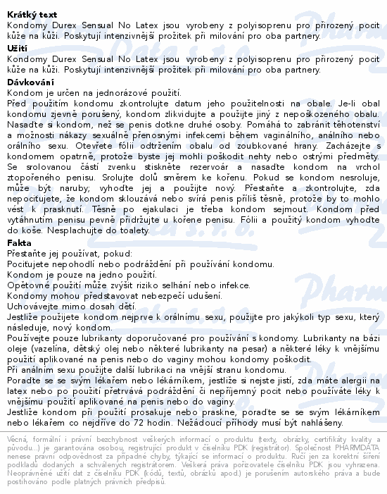 Kondomy Durex Sensual No Latex jsou vyrobeny z polyisoprenu pro přirozený pocit kůže na kůži. Poskytují intenzivnější prožitek při milování pro oba partnery.