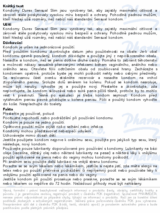 DUREX Sensual Slim prezervativ 3ks