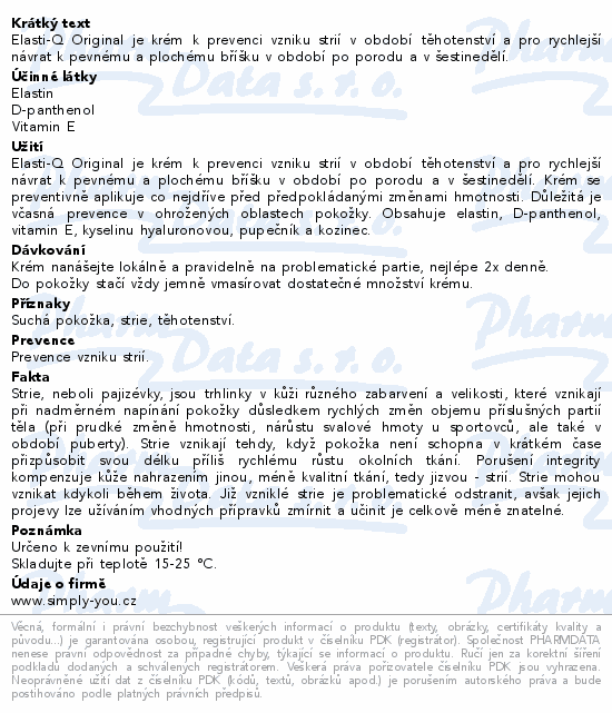 Elasti-Q Original je krém k prevenci vzniku strií v období těhotenství a pro rychlejší návrat k pevnému a plochému bříšku v období po porodu a v šestinedělí.